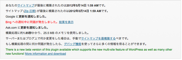 これ以降は更新するたびにサイトマップも自動的に更新、登録をしてくれます。