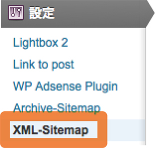 Google XML Sitemapsプラグインを無事にアップロードした後、【設定】ボタンに「XML-Sitemap」という項目が現れるので、これをクリック。